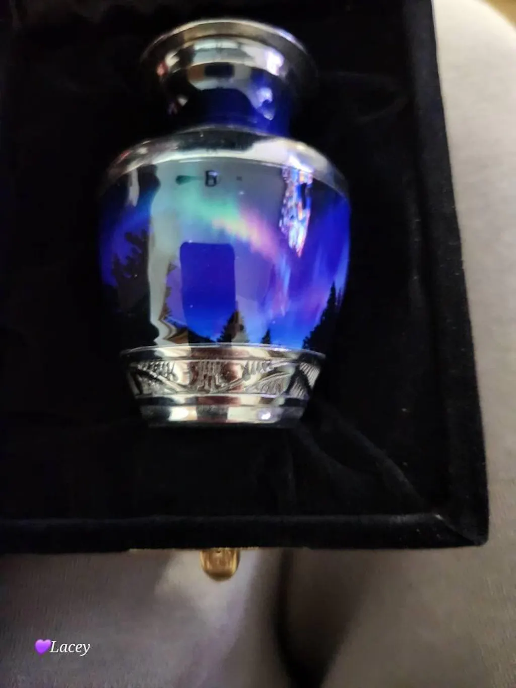 Under the shimmering dance of the aurora, where the night sky meets eternal peace, our northern lights urn offers a place where love and memory are forever united. Crafted to embody the tranquility and wonder of the northern skies, each northern lights urn captures the essence of light guiding your loved one's spirit home.