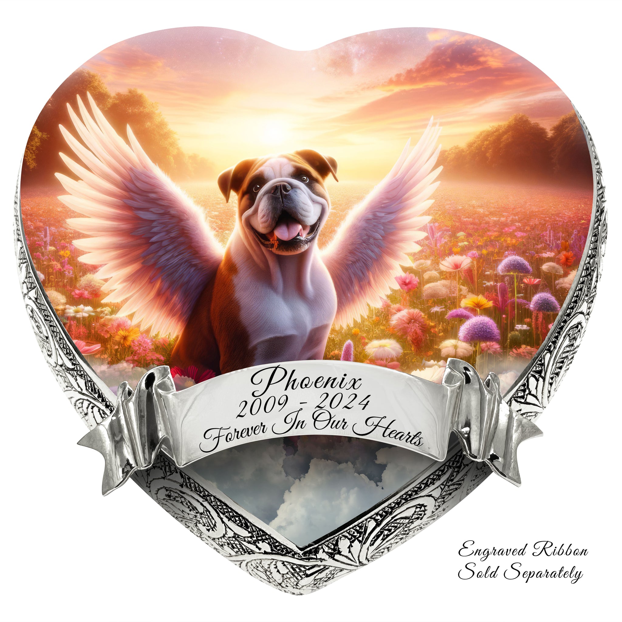 Honor your pet's journey over the Rainbow Bridge with the "Little Angels Heart Urn," a symbol of love, memory, and the everlasting paw prints they left on your heart.