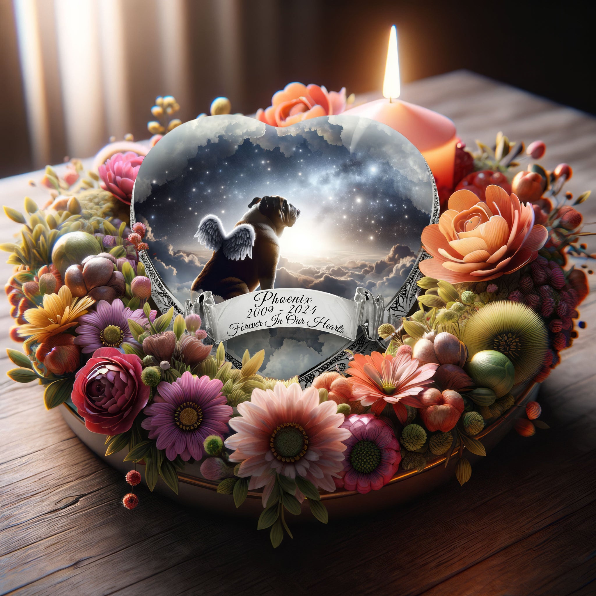 Custom Urn Information : To create a personalized urn for your pet, simply provide us with the desired name, dates, and a chosen quote or message. Our team of angels will carefully incorporate your personal touches, ensuring that the final piece is as unique as the bond you shared with your pet.