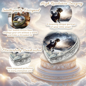 Honor your pet's journey over the Rainbow Bridge with the "Little Angels Heart Urn," a symbol of love, memory, and the everlasting paw prints they left on your heart.