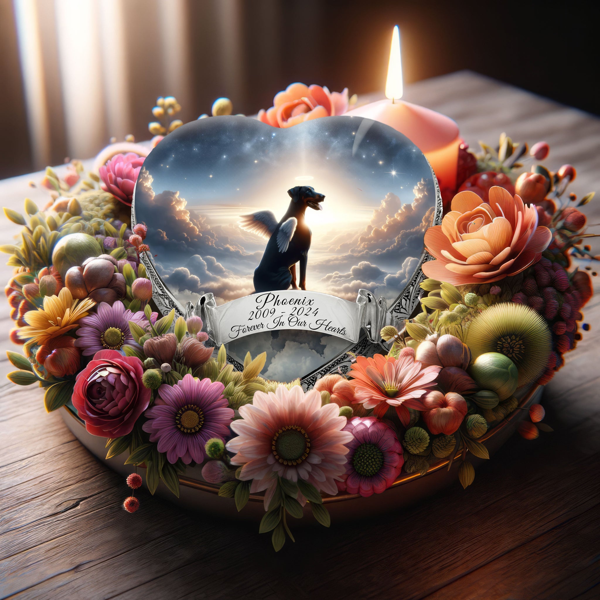 Custom Urn Information : To create a personalized urn for your pet, simply provide us with the desired name, dates, and a chosen quote or message. Our team of angels will carefully incorporate your personal touches, ensuring that the final piece is as unique as the bond you shared with your pet.