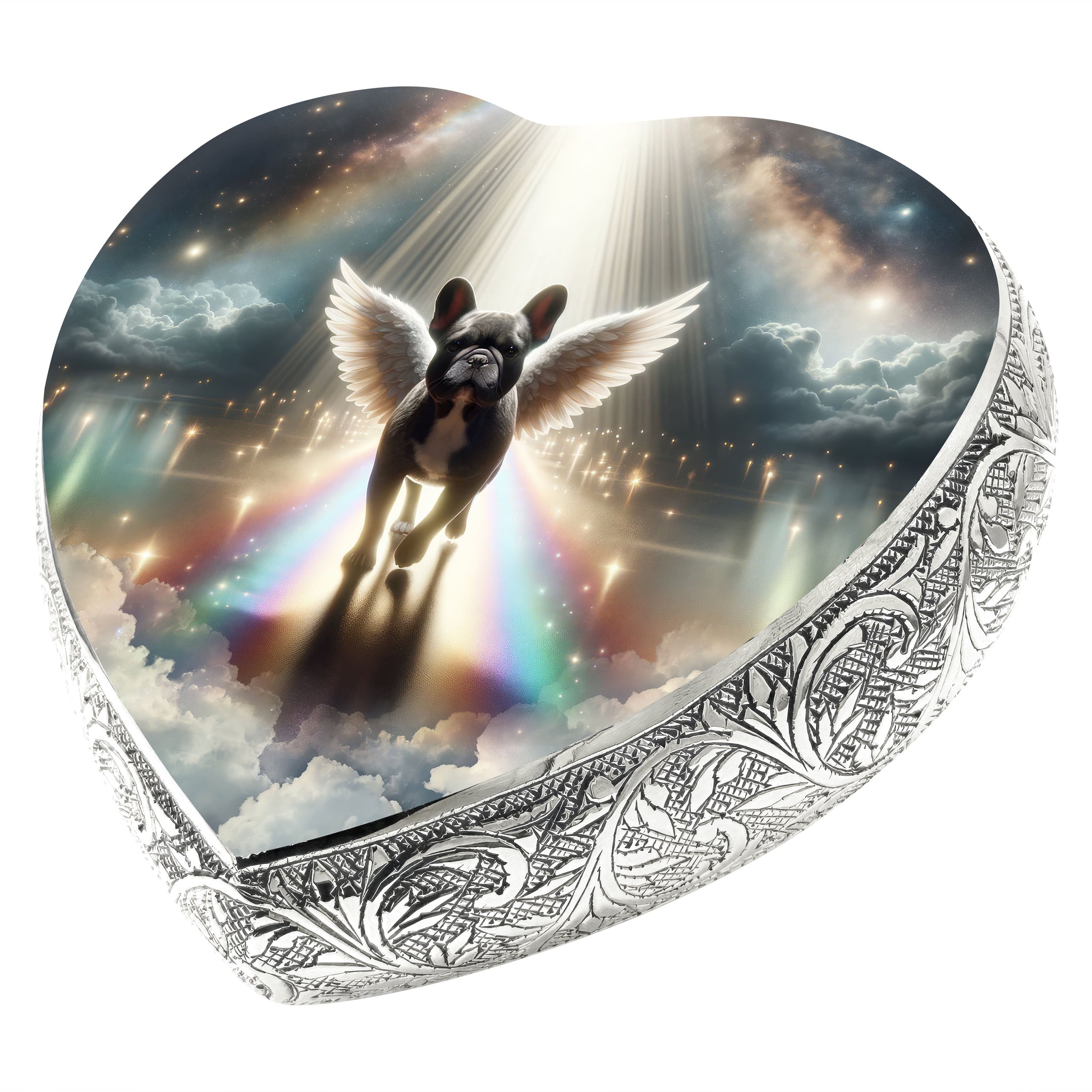 Honor your pet's journey over the Rainbow Bridge with the "Little Angels Heart Urn," a symbol of love, memory, and the everlasting paw prints they left on your heart.