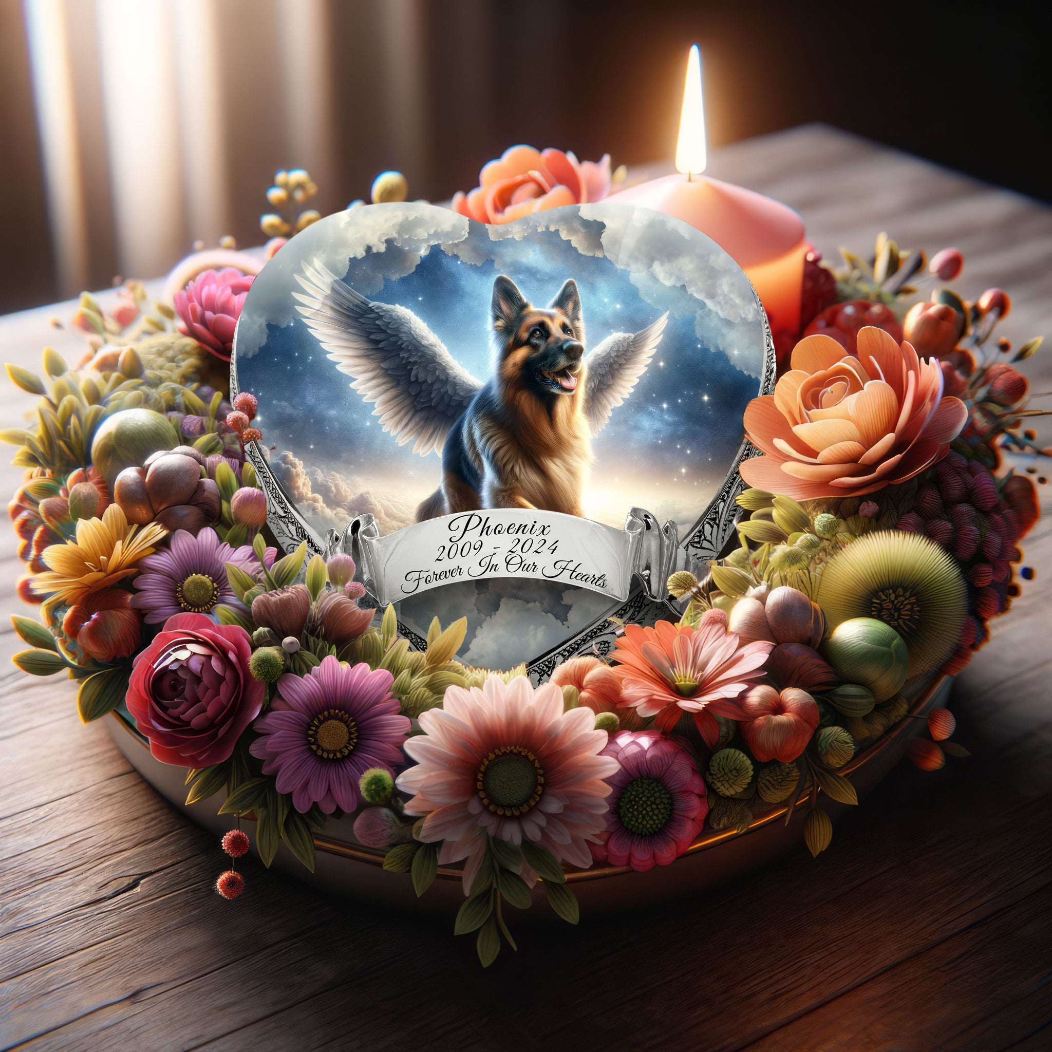 Custom Urn Information : To create a personalized urn for your pet, simply provide us with the desired name, dates, and a chosen quote or message. Our team of angels will carefully incorporate your personal touches, ensuring that the final piece is as unique as the bond you shared with your pet.