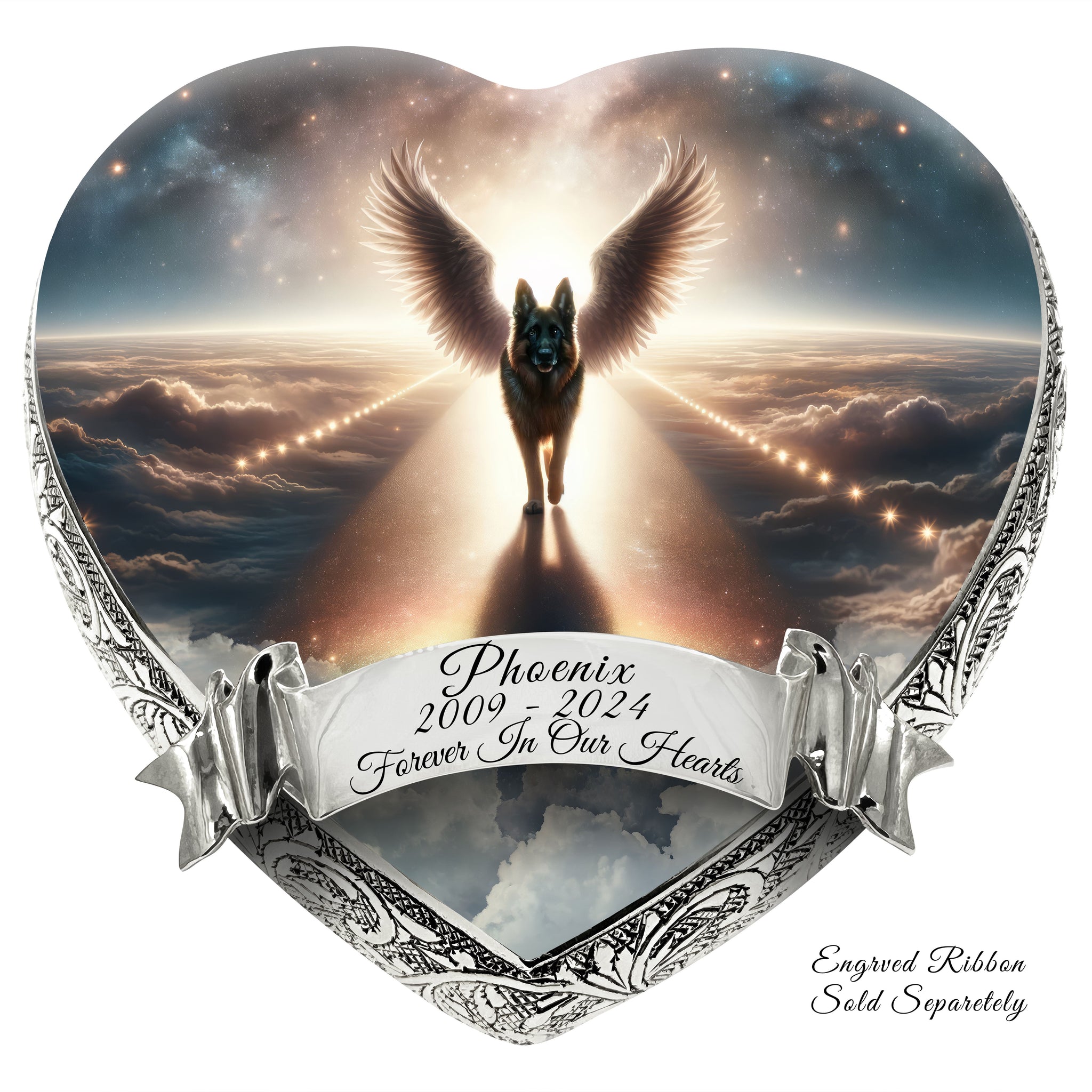 Honor your pet's journey over the Rainbow Bridge with the "Little Angels Heart Urn," a symbol of love, memory, and the everlasting paw prints they left on your heart.