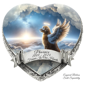 Honor your pet's journey over the Rainbow Bridge with the "Little Angels Heart Urn," a symbol of love, memory, and the everlasting paw prints they left on your heart.