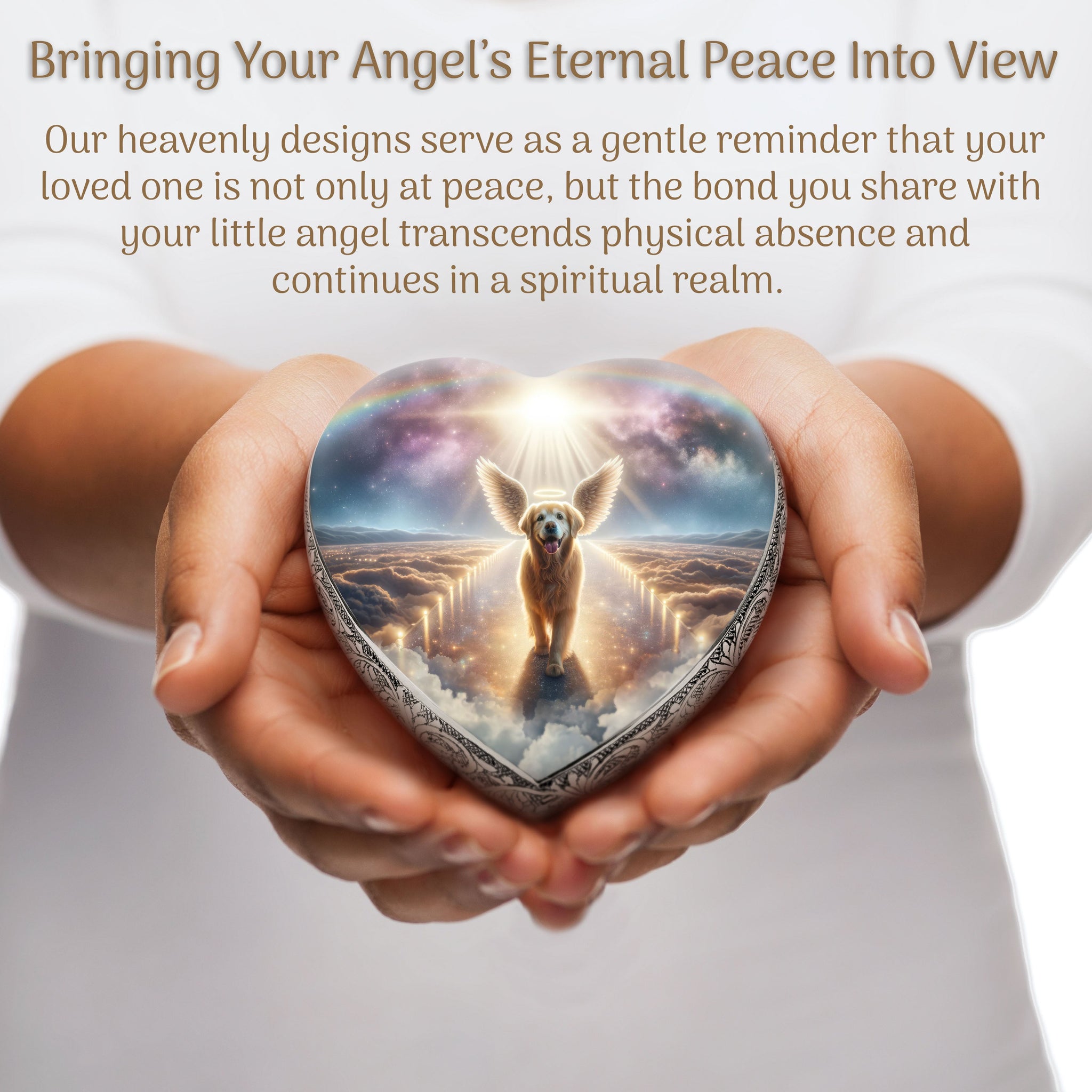 Honor your pet's journey over the Rainbow Bridge with the "Little Angels Heart Urn," a symbol of love, memory, and the everlasting paw prints they left on your heart.