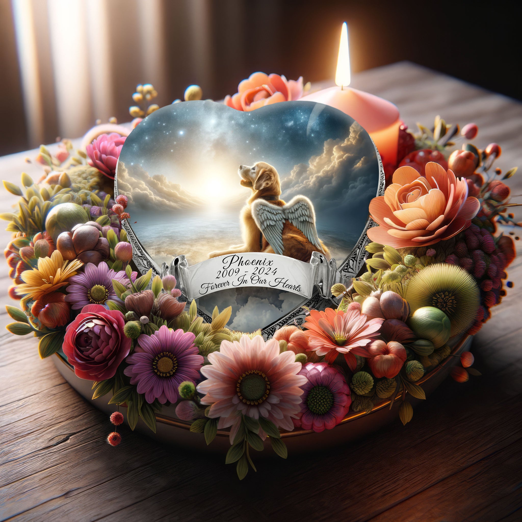 Custom Urn Information : To create a personalized urn for your pet, simply provide us with the desired name, dates, and a chosen quote or message. Our team of angels will carefully incorporate your personal touches, ensuring that the final piece is as unique as the bond you shared with your pet.