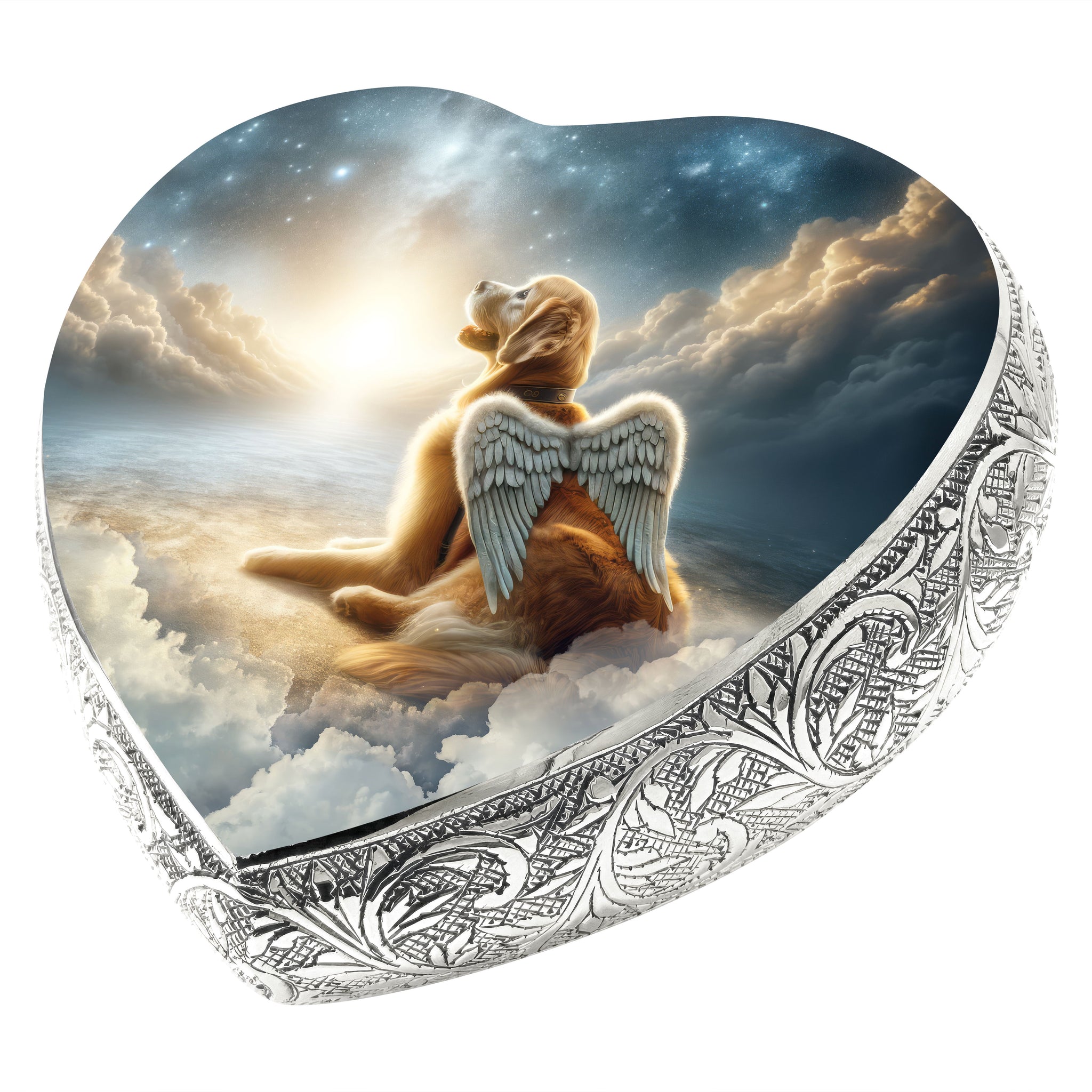 Cherish the memory of your furry companion with our "Little Angels Heart Urn." Meticulously crafted, this exquisite heart-shaped urn serves as a beautiful symbol of the unbreakable bond you shared with your pet.