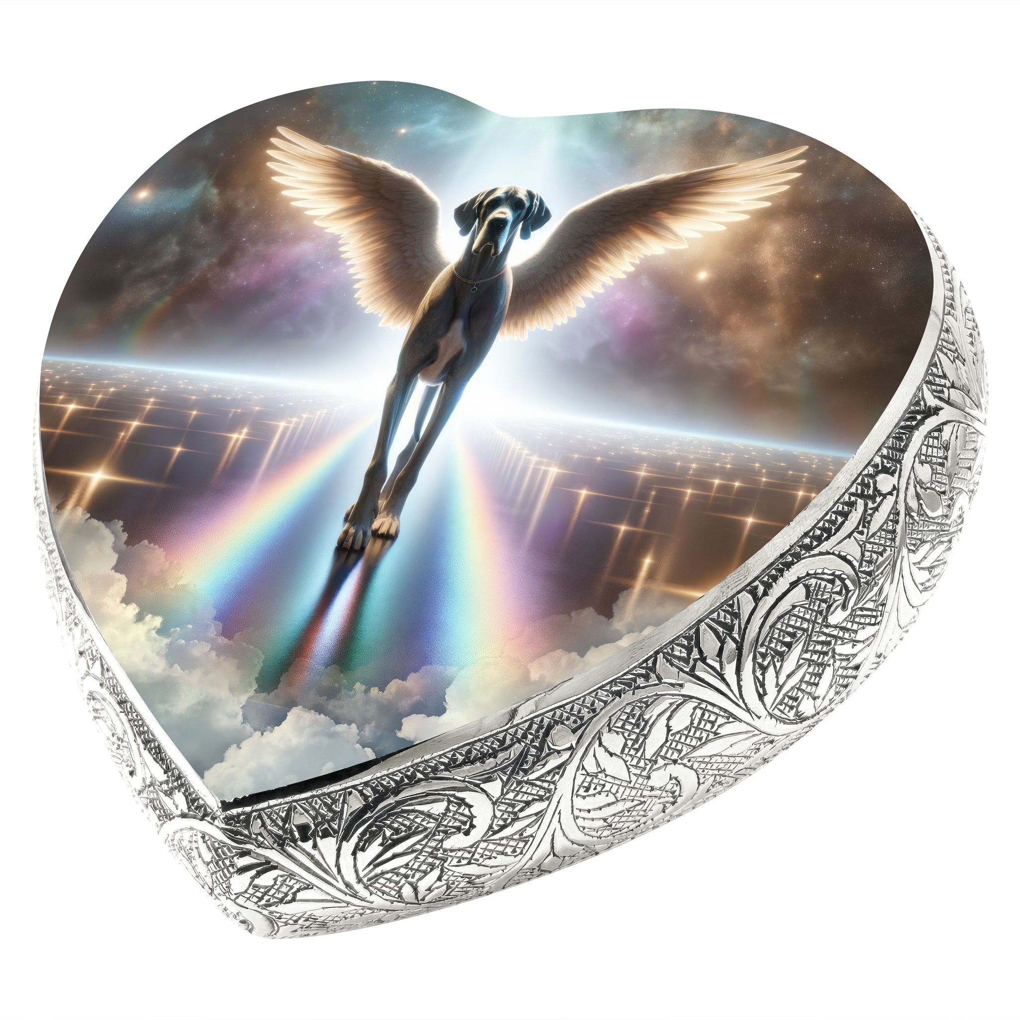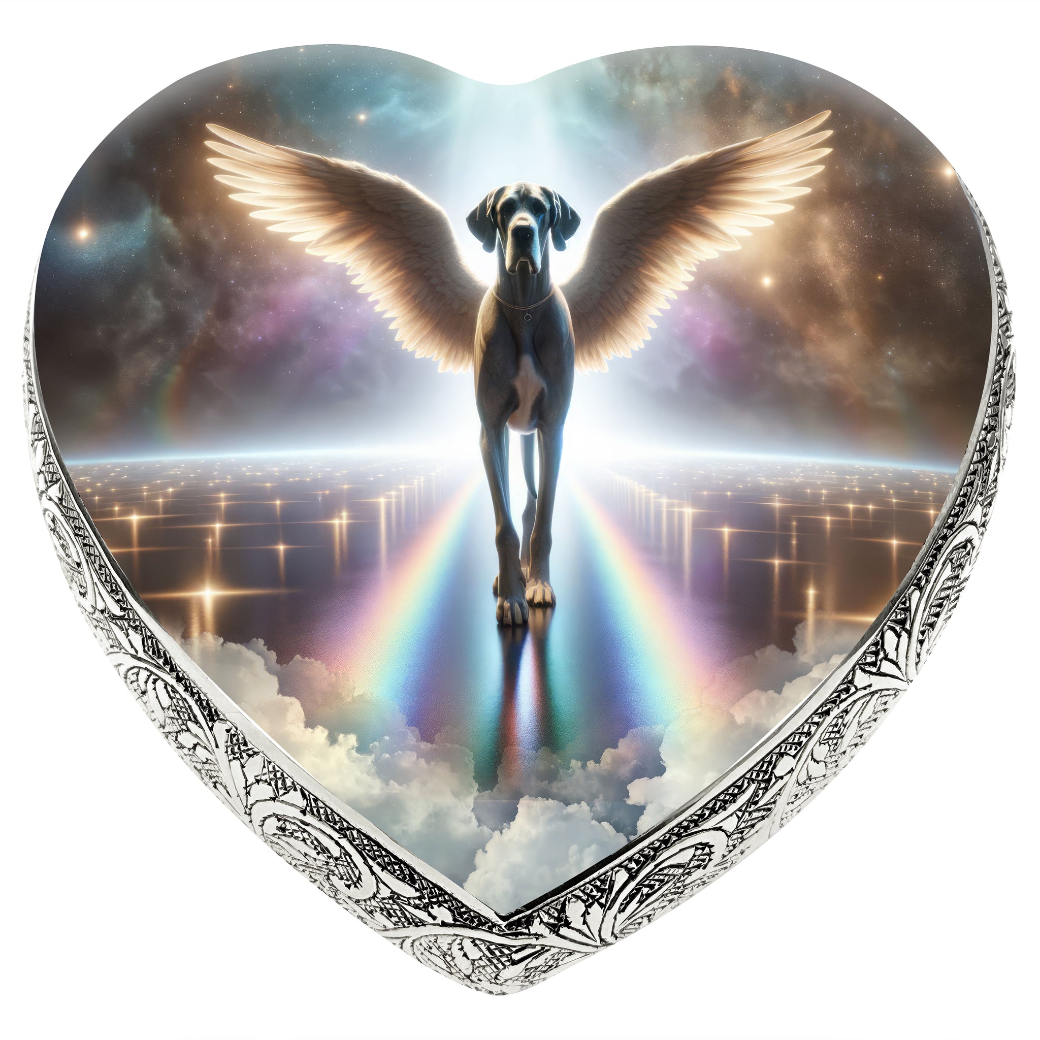 Honor your pet's journey over the Rainbow Bridge with the "Little Angels Heart Urn," a symbol of love, memory, and the everlasting paw prints they left on your heart.