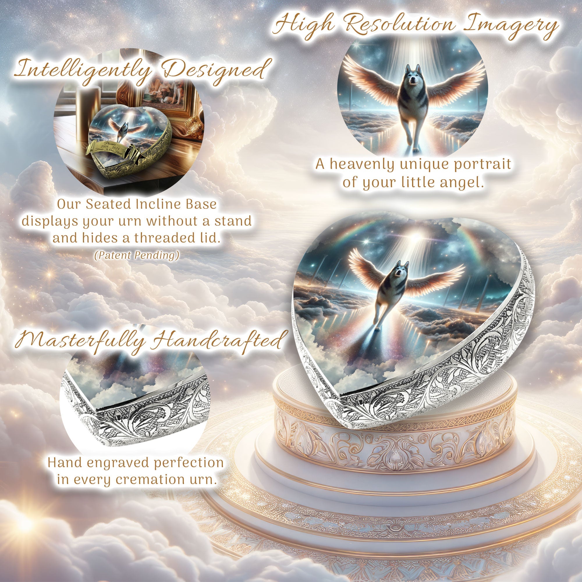 Honor your pet's journey over the Rainbow Bridge with the "Little Angels Heart Urn," a symbol of love, memory, and the everlasting paw prints they left on your heart.