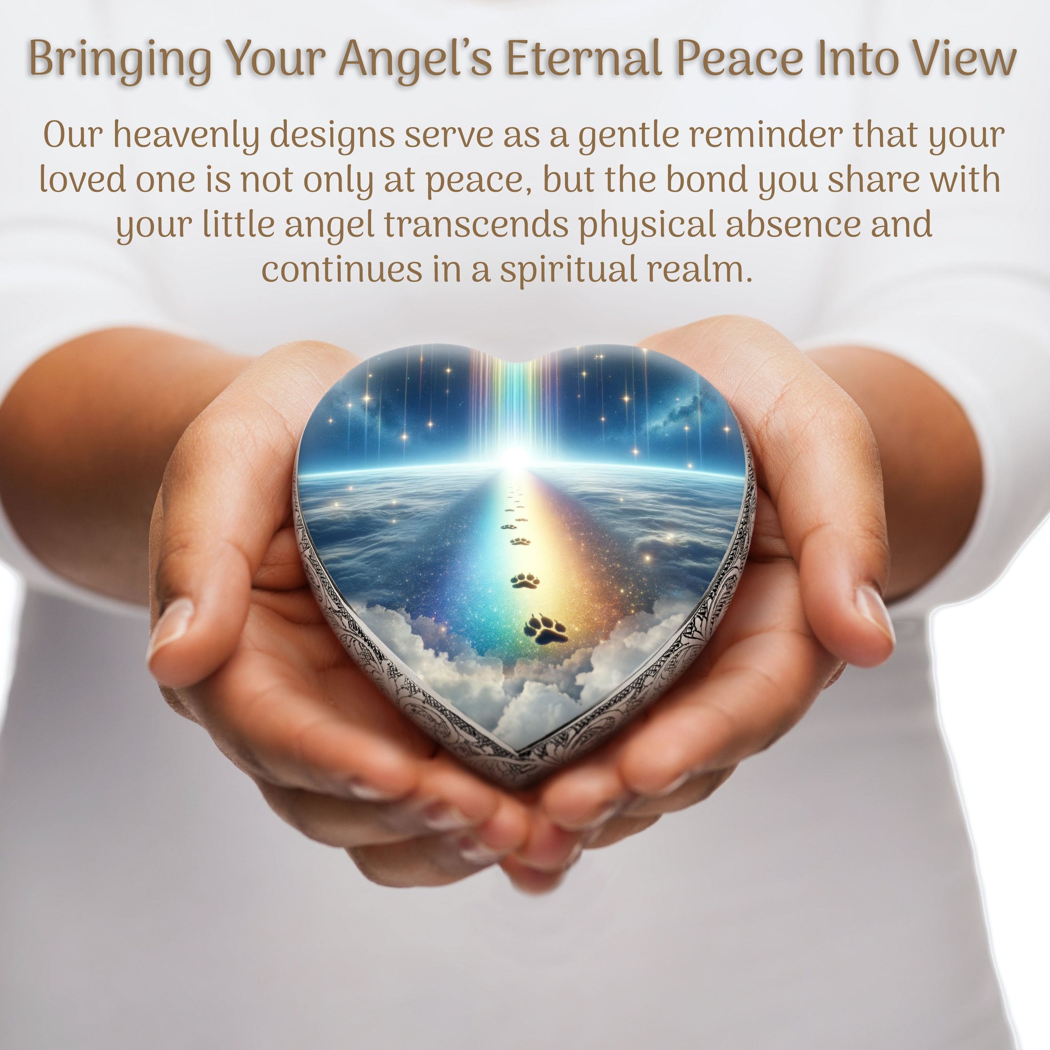 Honor your pet's journey over the Rainbow Bridge with the "Little Angels Heart Urn," a symbol of love, memory, and the everlasting paw prints they left on your heart.