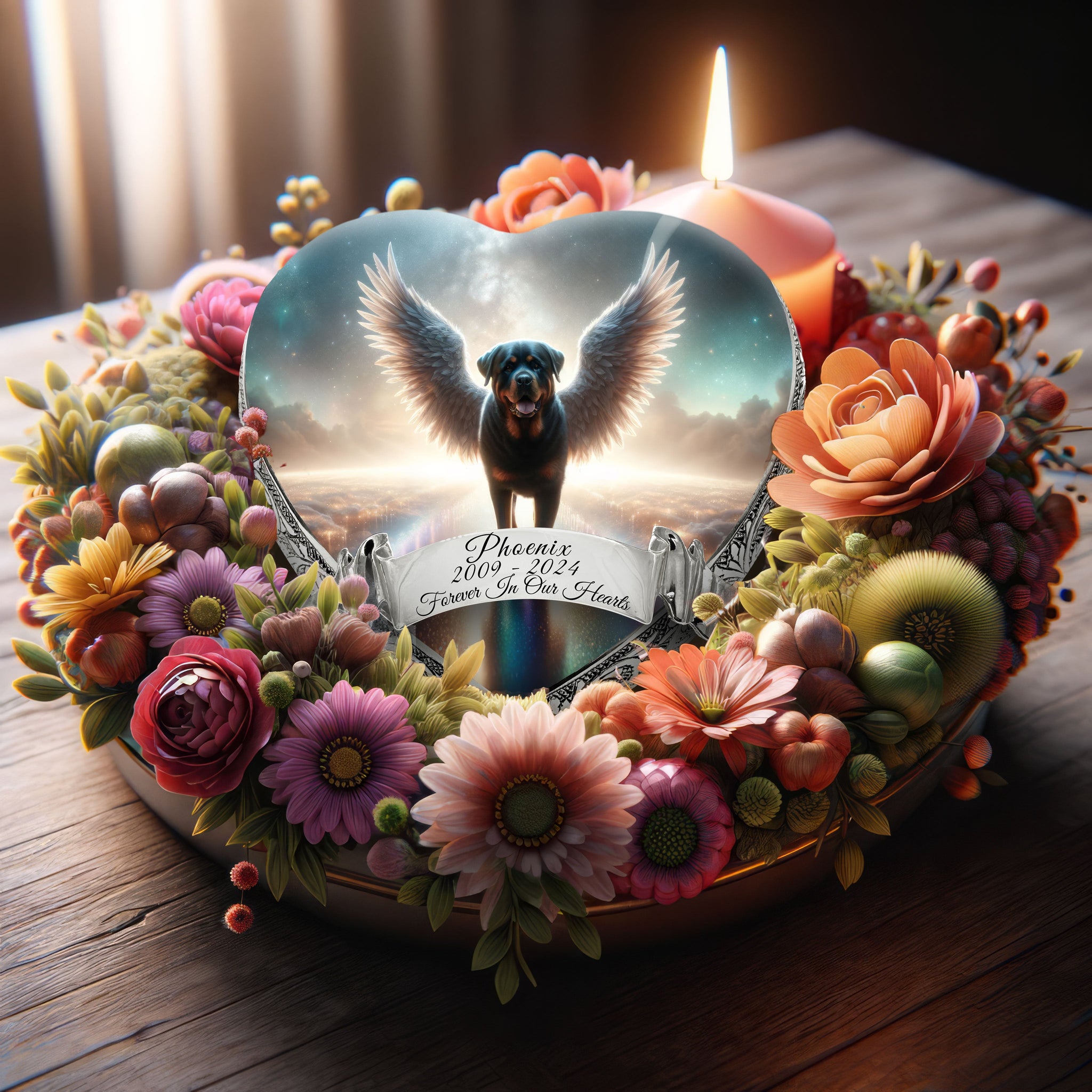Custom Urn Information : To create a personalized urn for your pet, simply provide us with the desired name, dates, and a chosen quote or message. Our team of angels will carefully incorporate your personal touches, ensuring that the final piece is as unique as the bond you shared with your pet.