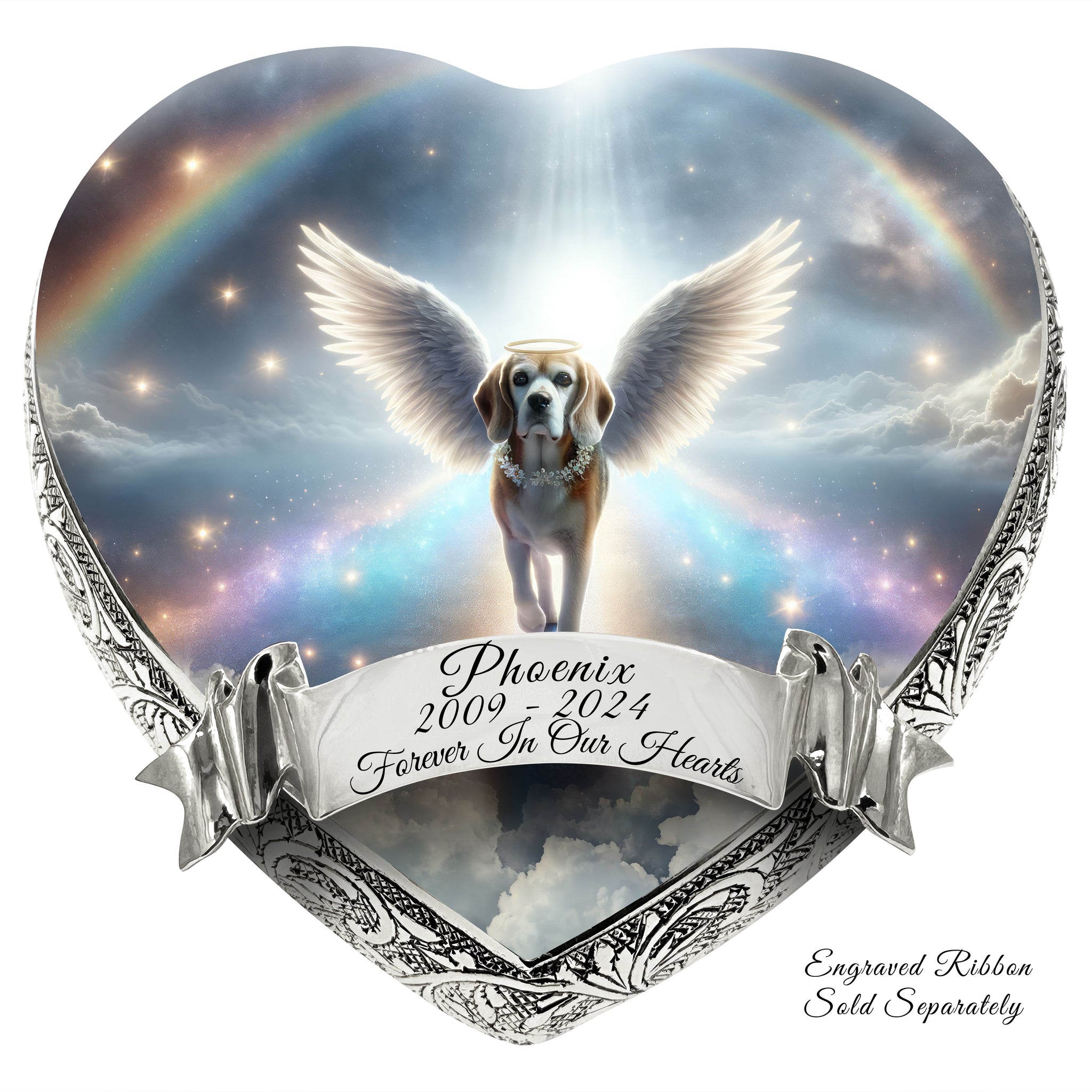 Honor your pet's journey over the Rainbow Bridge with the "Little Angels Heart Urn," a symbol of love, memory, and the everlasting paw prints they left on your heart.