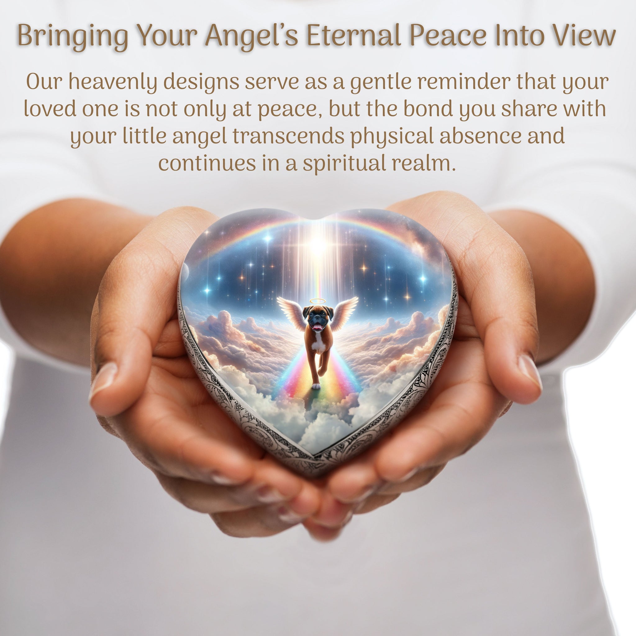 Honor your pet's journey over the Rainbow Bridge with the "Little Angels Heart Urn," a symbol of love, memory, and the everlasting paw prints they left on your heart.