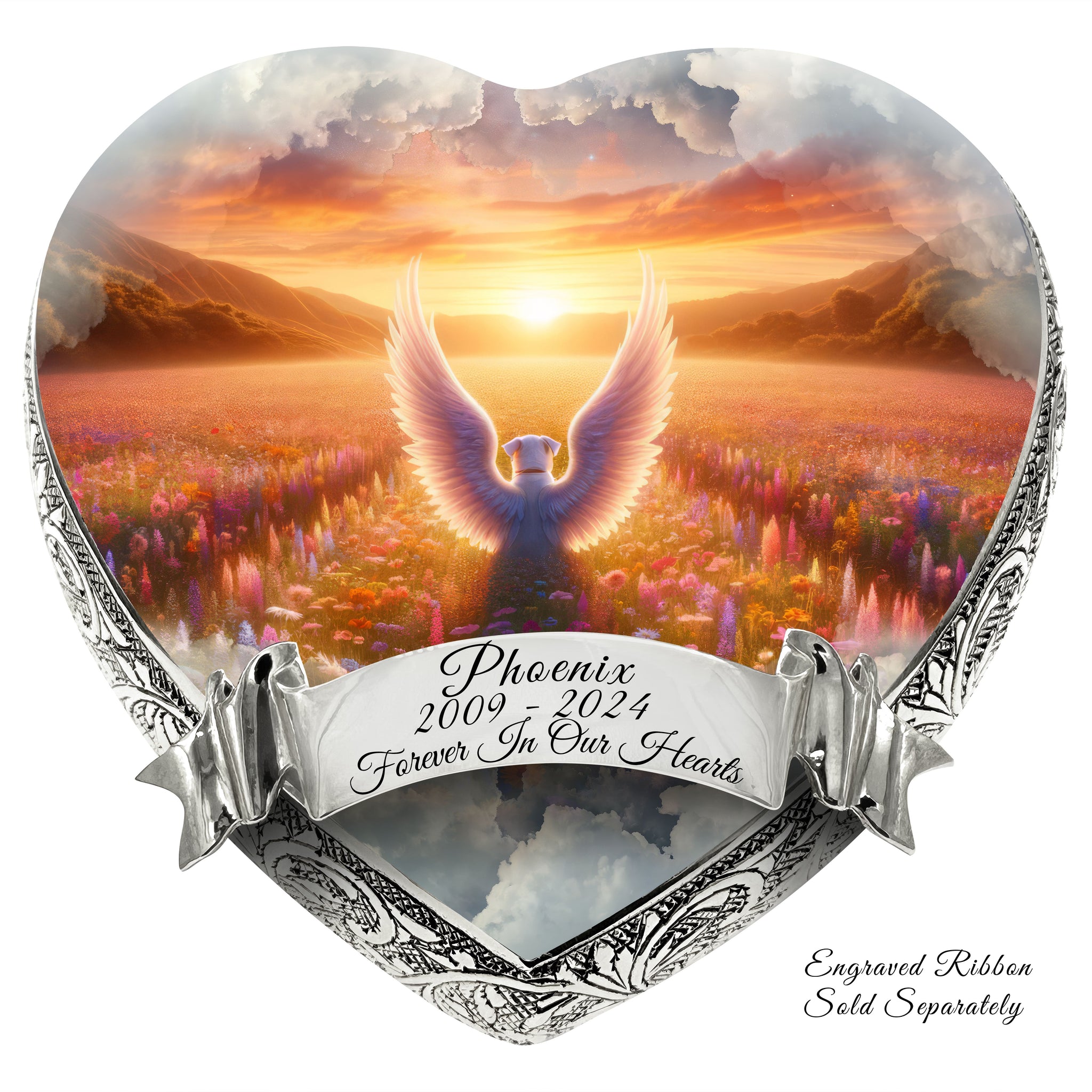 Honor your pet's journey over the Rainbow Bridge with the "Little Angels Heart Urn," a symbol of love, memory, and the everlasting paw prints they left on your heart.