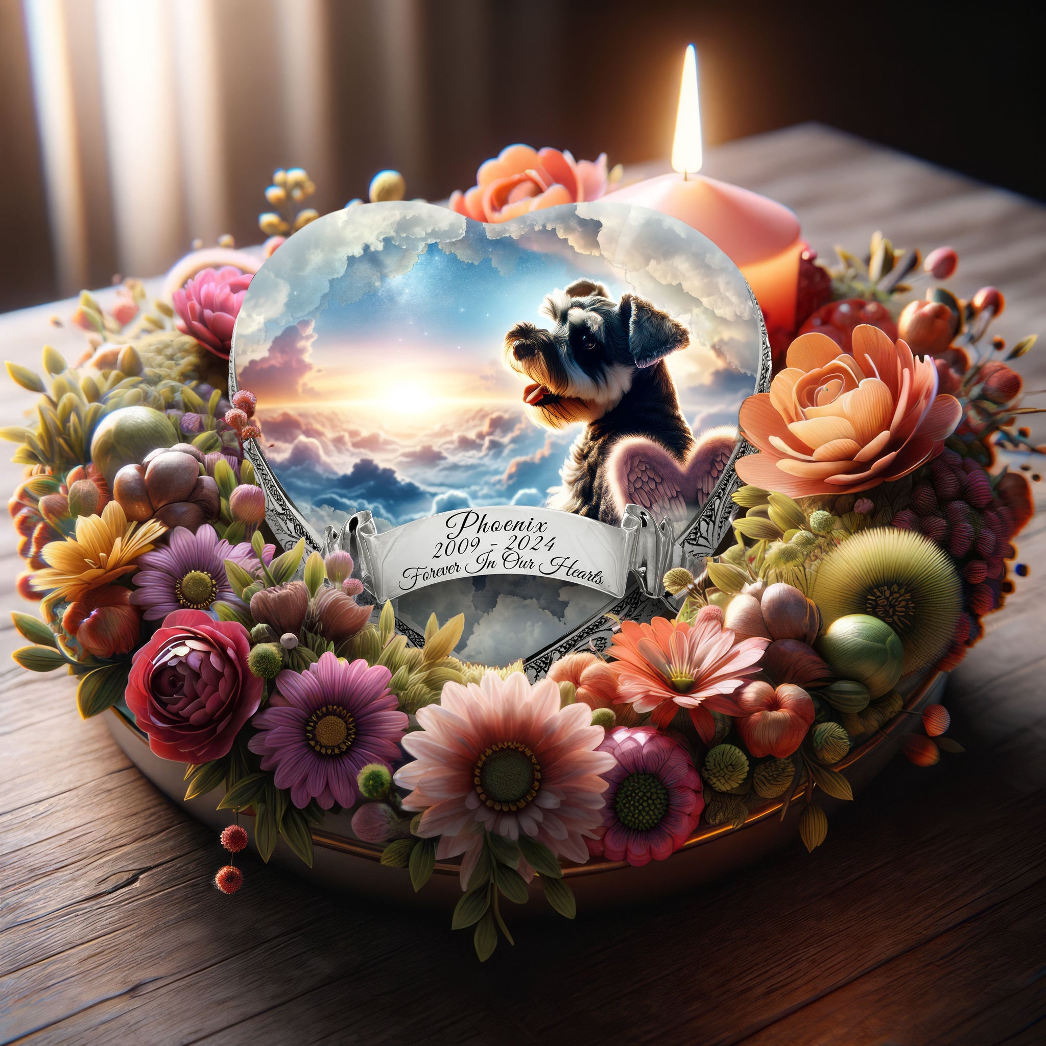 Custom Urn Information : To create a personalized urn for your pet, simply provide us with the desired name, dates, and a chosen quote or message. Our team of angels will carefully incorporate your personal touches, ensuring that the final piece is as unique as the bond you shared with your pet.