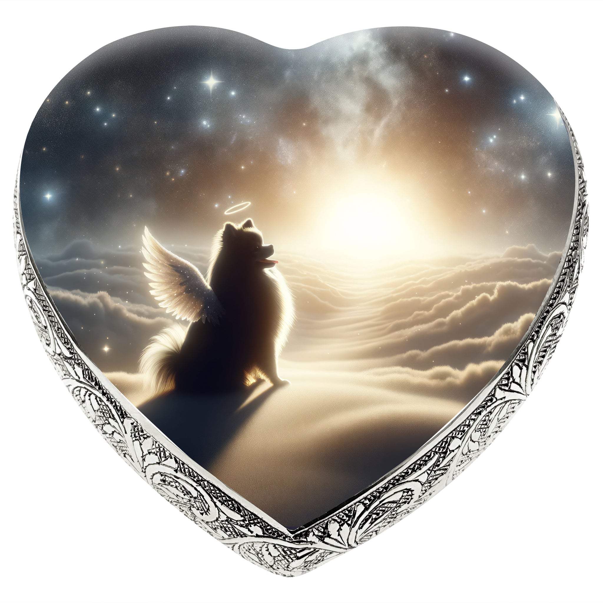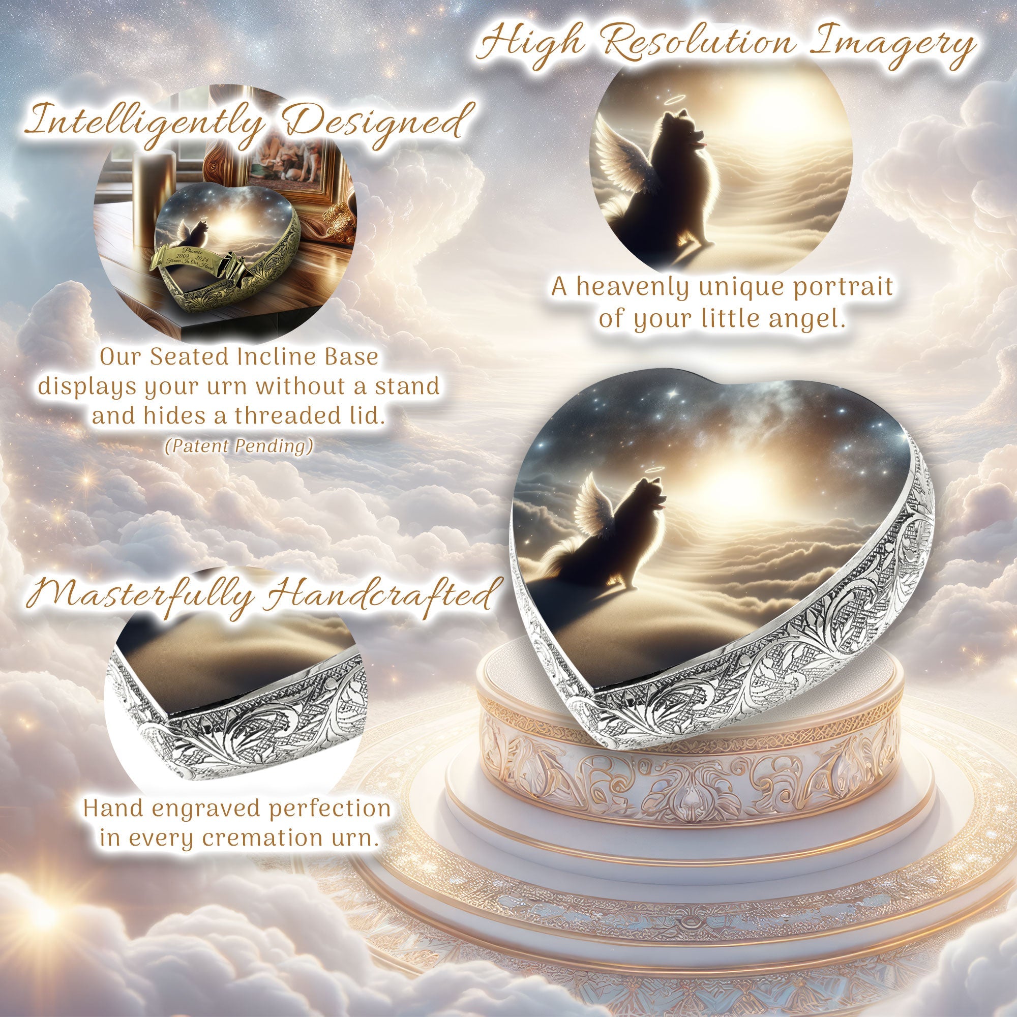 Honor your pet's journey over the Rainbow Bridge with the "Little Angels Heart Urn," a symbol of love, memory, and the everlasting paw prints they left on your heart.