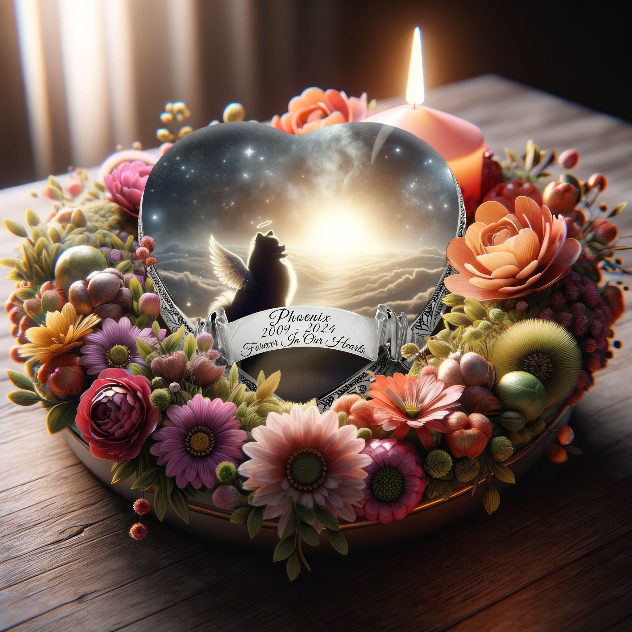 Custom Urn Information : To create a personalized urn for your pet, simply provide us with the desired name, dates, and a chosen quote or message. Our team of angels will carefully incorporate your personal touches, ensuring that the final piece is as unique as the bond you shared with your pet.