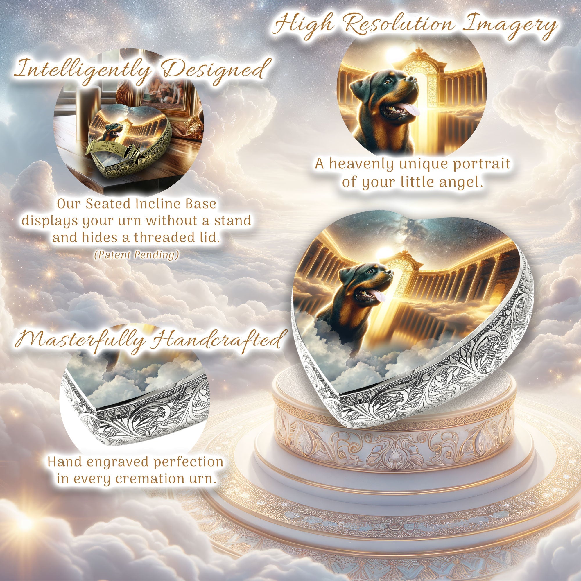 Honor your pet's journey over the Rainbow Bridge with the "Little Angels Heart Urn," a symbol of love, memory, and the everlasting paw prints they left on your heart.