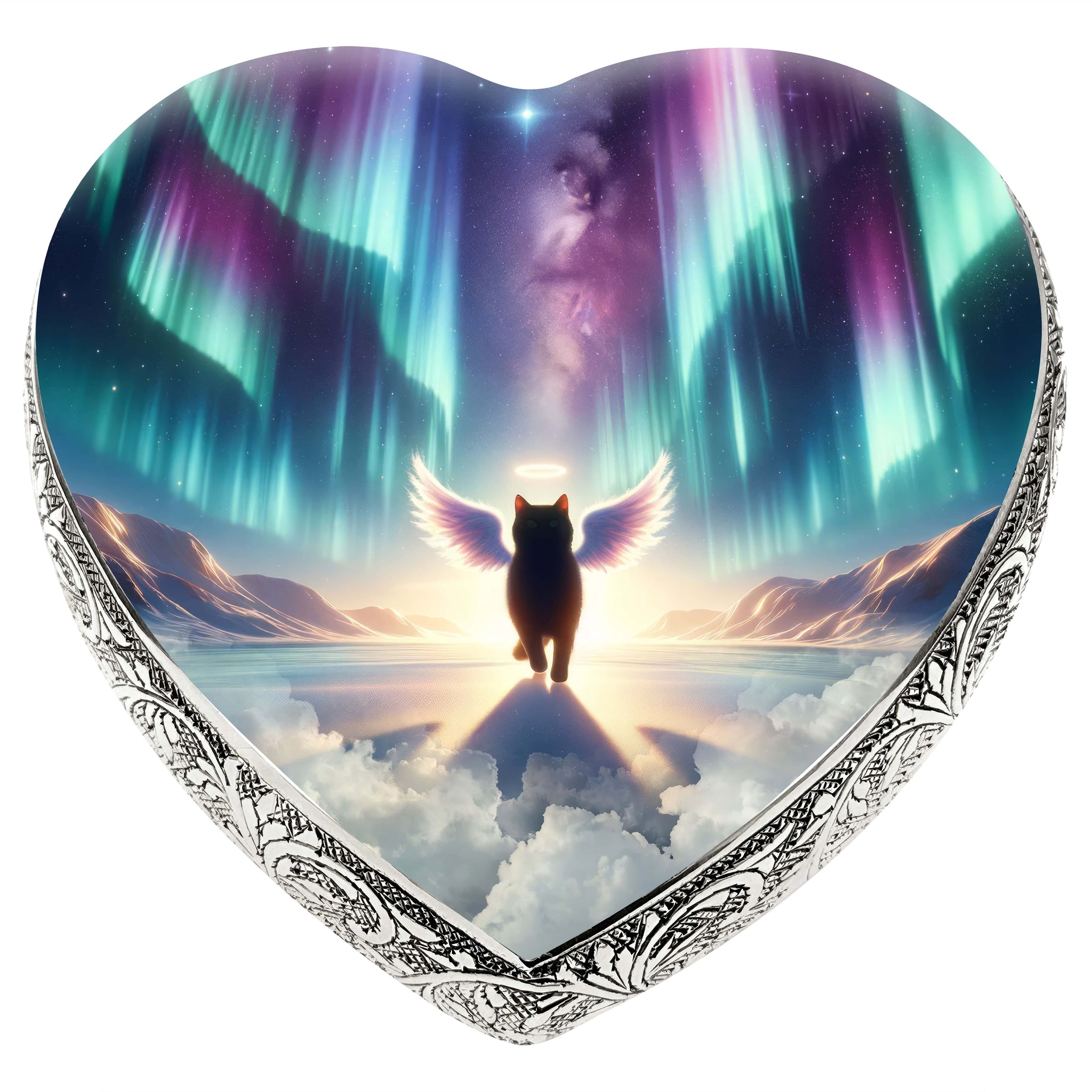 Honor your pet's journey over the Rainbow Bridge with the "Little Angels Heart Urn," a symbol of love, memory, and the everlasting paw prints they left on your heart.