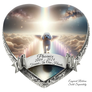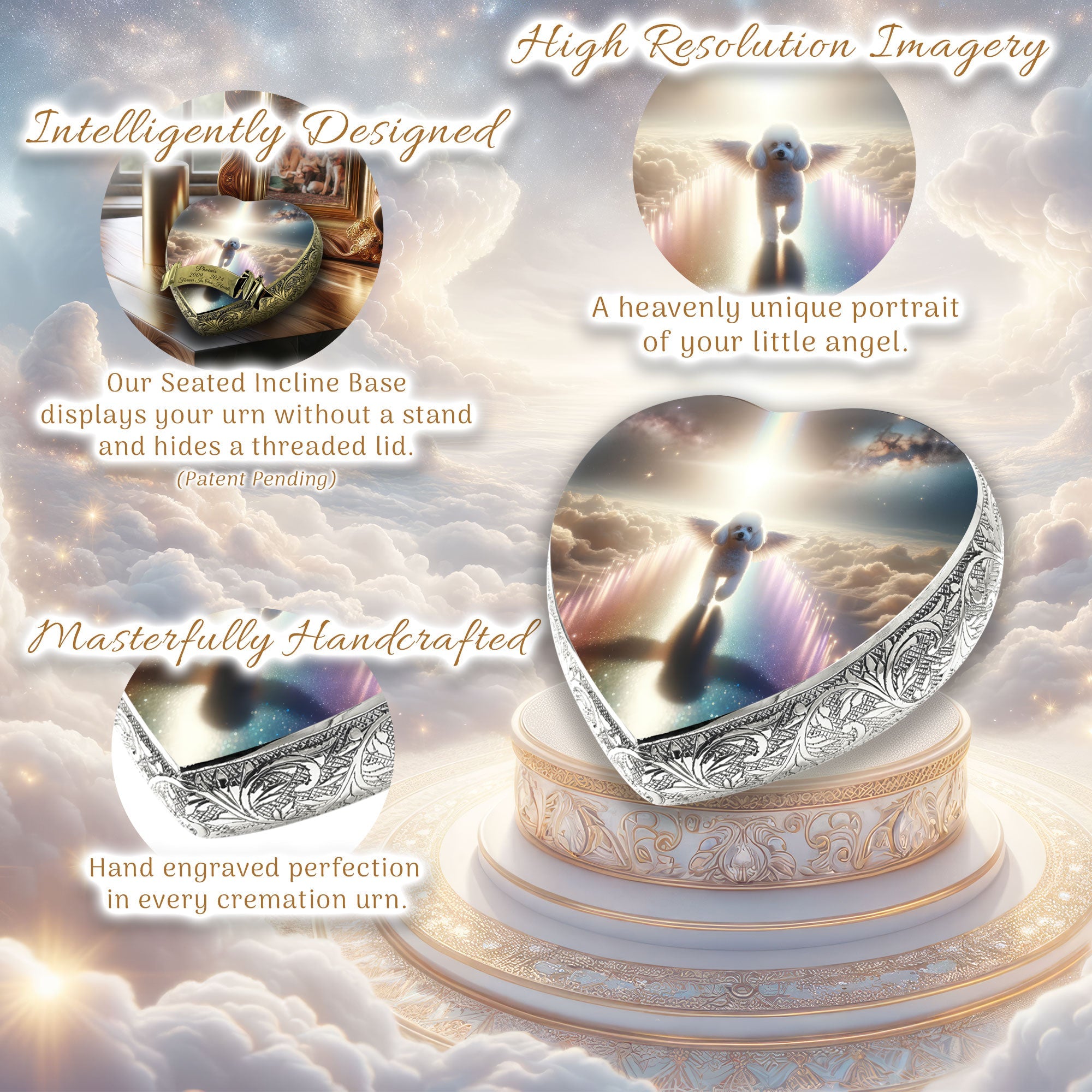 Honor your pet's journey over the Rainbow Bridge with the "Little Angels Heart Urn," a symbol of love, memory, and the everlasting paw prints they left on your heart.