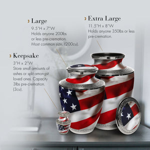 American Flag Cremation Urns for Human Ashes - Large Adult American Flag Urn for Ashes