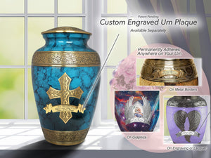 Love of Christ Mediterranean Blue Cross Cremation Urns