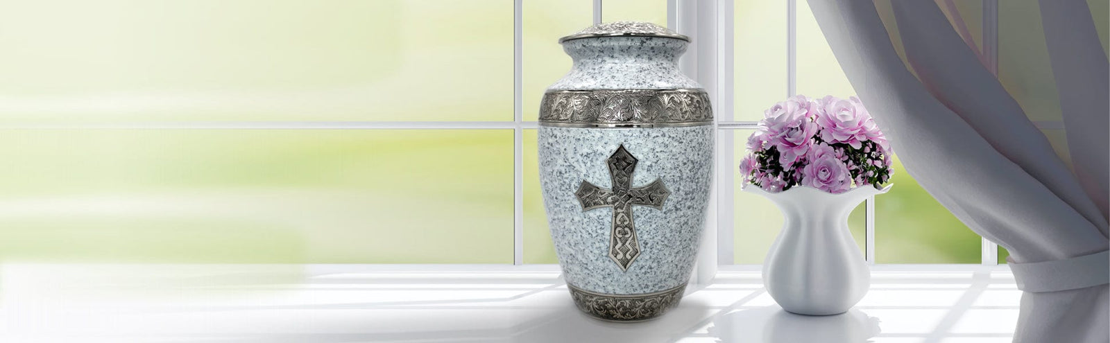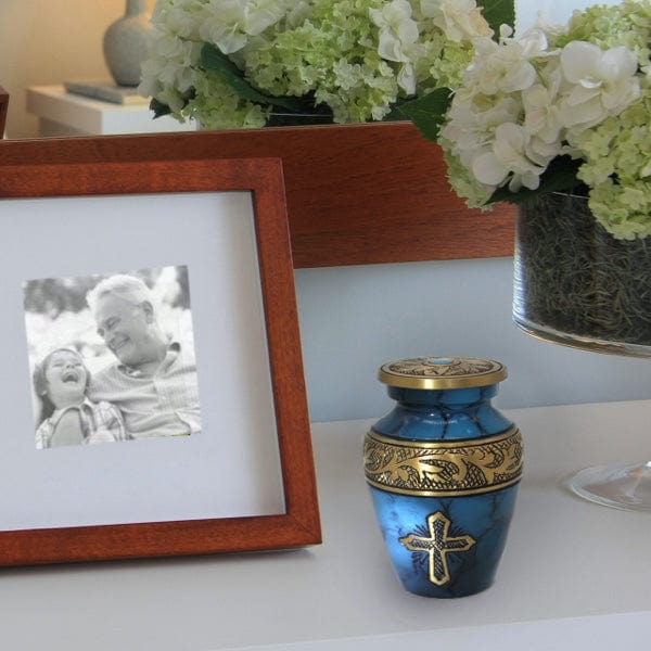 Love of Christ Mediterranean Blue Cross Cremation Urns