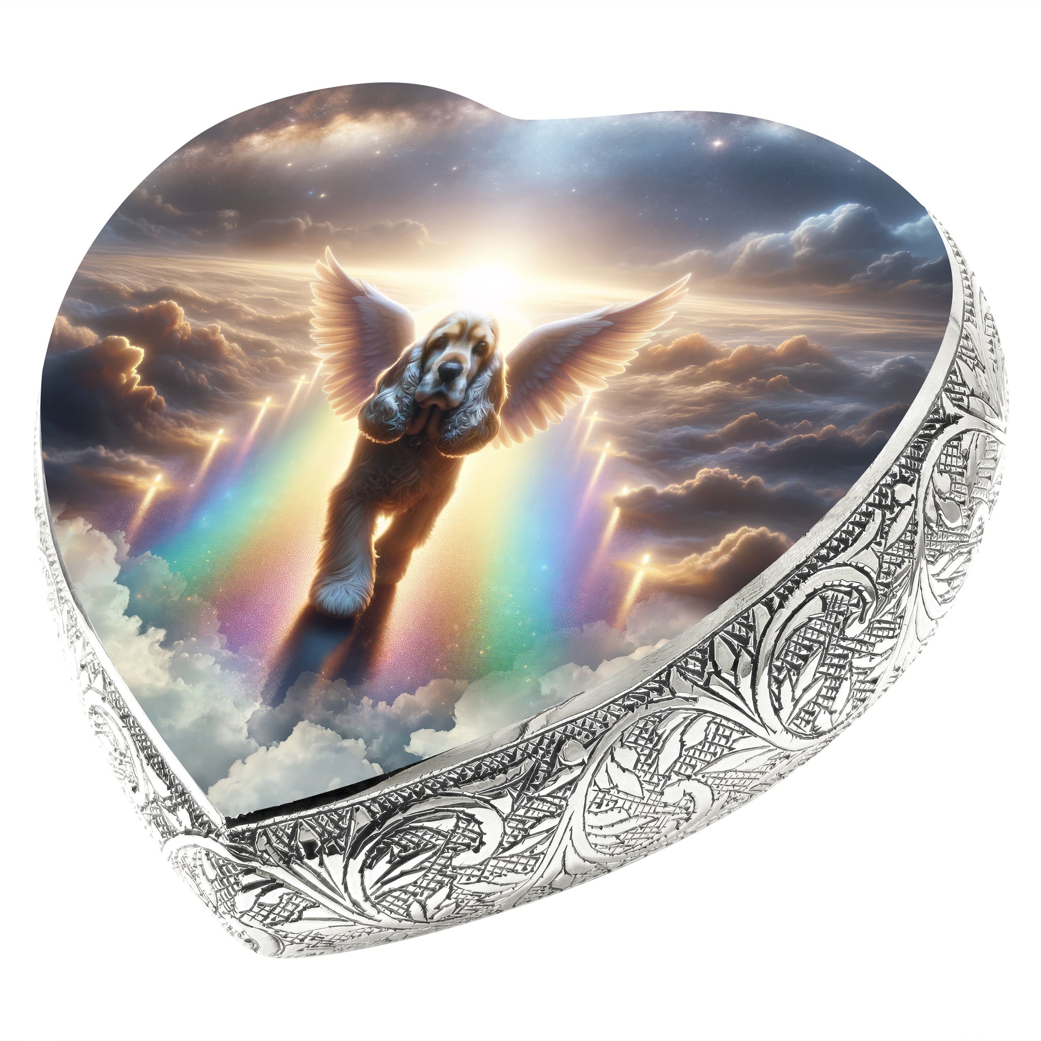Honor your pet's journey over the Rainbow Bridge with the "Little Angels Heart Urn," a symbol of love, memory, and the everlasting paw prints they left on your heart.