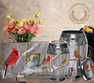 Cozy Cardinals Matching Themed 'Celebration of Life' Guest Book for Funeral or Memorial Service