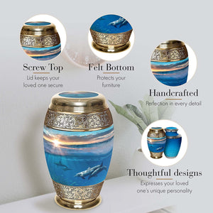 Divine Dolphin Cremation Urns for Human Ashes - Large Adult Funeral Urn