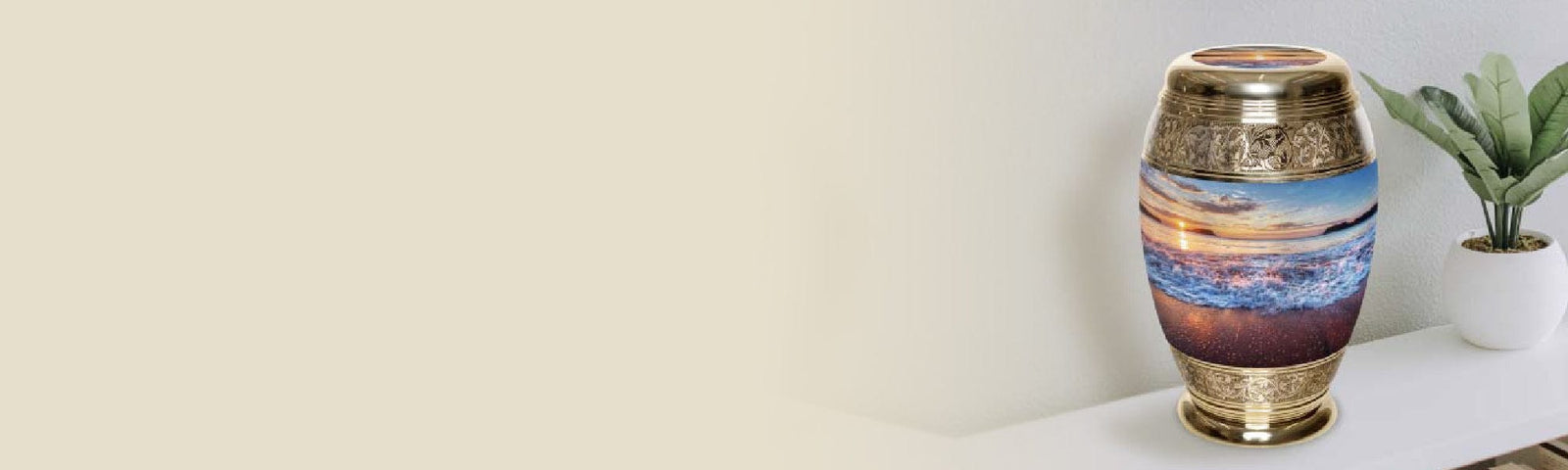 As Unique as the Lives the Symbolize, our Sunset Urns for cremation ashes are built to last. We only use the highest quality materials in each cremation urn. Our funeral urns for human ashes are crafted with aerospace grade aluminum, are carefully hand engraved for an elegant detailed finish, and and have threaded lids that require firm counter-clockwise twisting to ensure a secure enclosure. Each large and extra large urn comes with a velvet gift bag for safe keeping during transport. Our small keepsake urns are made of 100% brass and come with a velvet gift box to serve as thoughtful gifts for family members that would like a heartfelt reminder of a loved one. Please note: We unfortunately do not provide engraving on our urns. Most designs do not have enough blank free space to accommodate this feature.