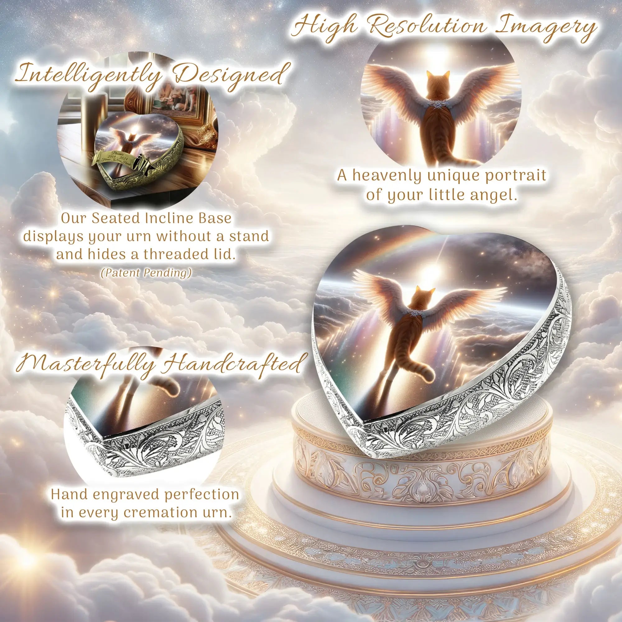 Honor your pet's journey over the Rainbow Bridge with the "Little Angels Heart Urn," a symbol of love, memory, and the everlasting paw prints they left on your heart