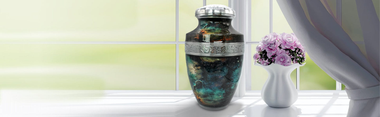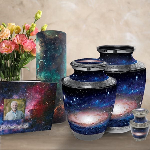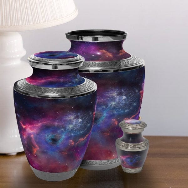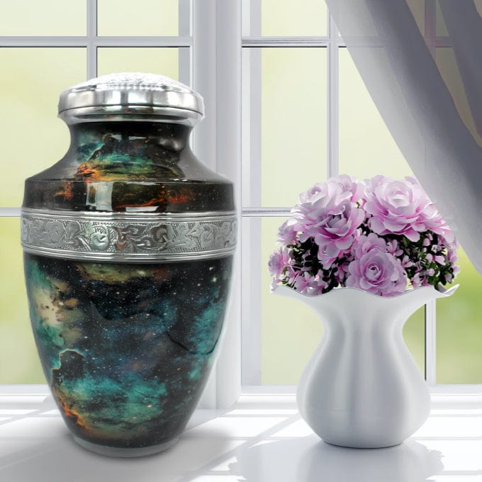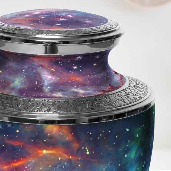 Our metal galaxy cremation urns and burial urns for cremated remains are designed to warm your heart with memories. These urns for cremation and urns for human ashes come in Large, XL and small serve as a beautiful works of art within your home. The Supernova Cremation Urns for human ashes and memorial urn is an interstellar tribute to your loved one. Mystic and heavenly, it features a supernova - an event that occurs during the death of a star, and can outshine entire galaxies and radiate more energy than our sun will in its entire lifetime.