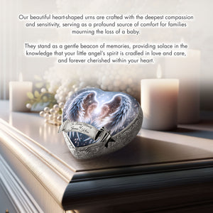 Shaped like a delicate heart, the urn's design carries a deeper meaning. The soft angel-wing artwork represents protection, peace, and the everlasting connection between you and your little one. Its graceful details and stunning imagery make it more than a memorial; it's a symbol of love that never ends.